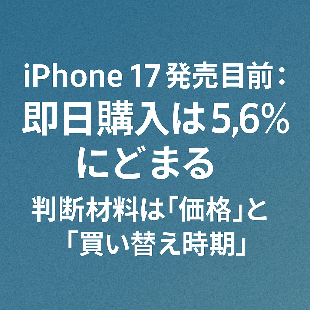 ヤマネックス株式会社「iPhone 17発売直前調査:iPhoneユーザーでも“即買いは5.6%”」(PR TIMES、2025年9月12日公開)を当サイトが要約・再構成しました。数値・日付は元資料に基づきます。