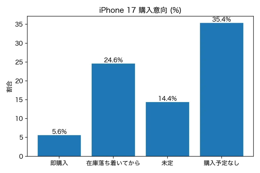 ヤマネックス株式会社が全国のスマートフォン利用者500名を対象に行った最新調査によると、iPhone 17を「発売日/予約で即購入する」人は5.6%。